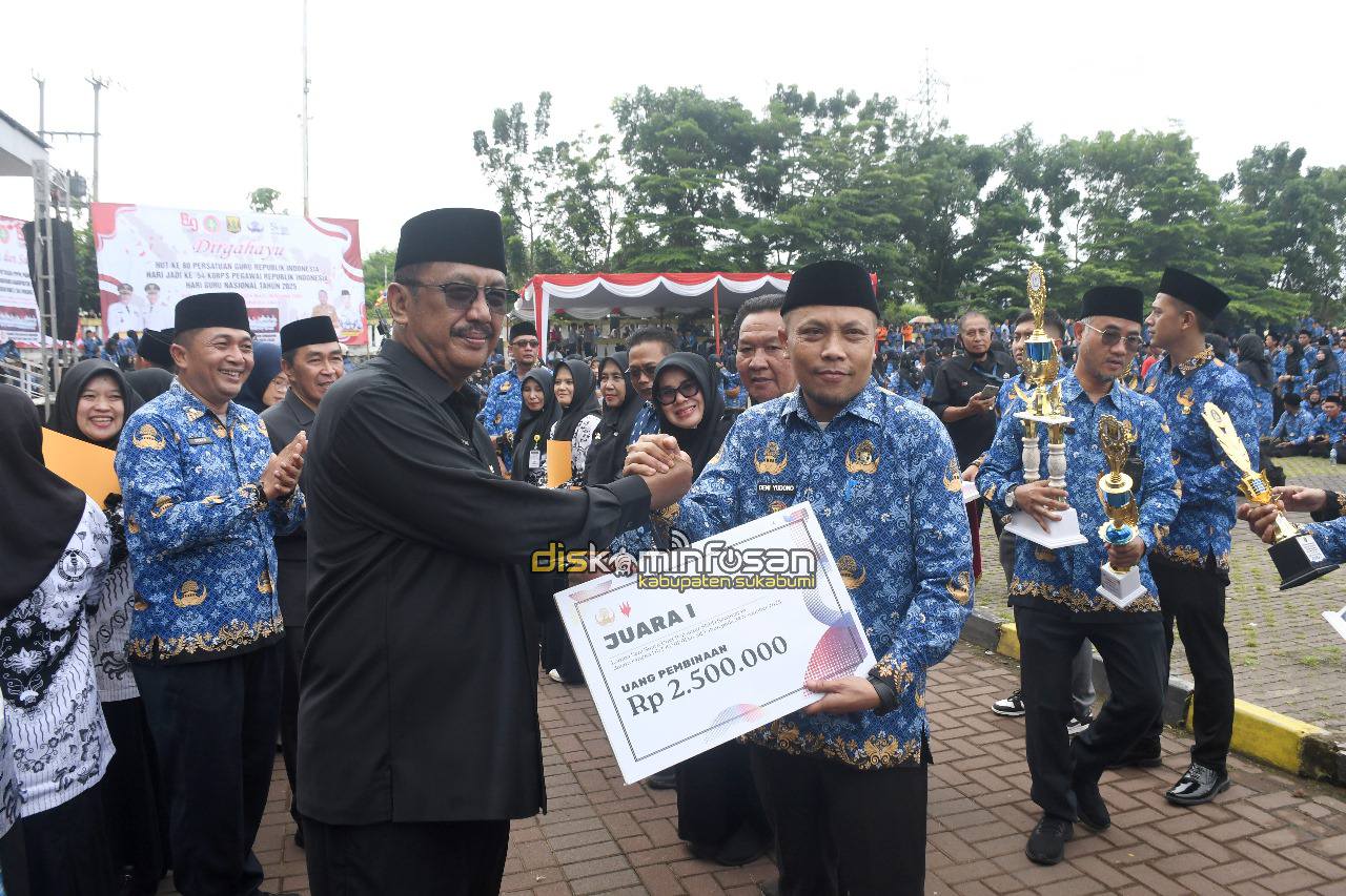 “Pelantikan PPPK Paruh Waktu, Peringatan HUT Ke-54 KORPRI, HUT Ke-80 PGRI, dan Hari Guru Nasional 2025 merupakan momentum strategis merefleksikan peran kita sebagai abdi negara dan pelayan masyarakat. Hal ini sekaligus meneguhkan komitmen kita untuk bersinergi mewujudkan visi Kabupaten Sukabumi yang Mubarakah,” ujarnya.
