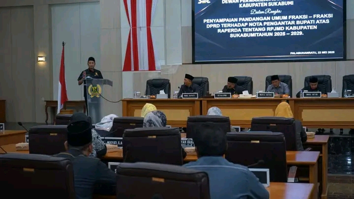 Rapat Paripurna dipimpin langsung oleh Ketua DPRD Kabupaten Sukabumi, Budi Azhar Mutawali. Dalam rapat ini seluruh fraksi DPRD menyampaikan pandangan umum mereka terhadap Raperda secara lisan maupun tertulis.