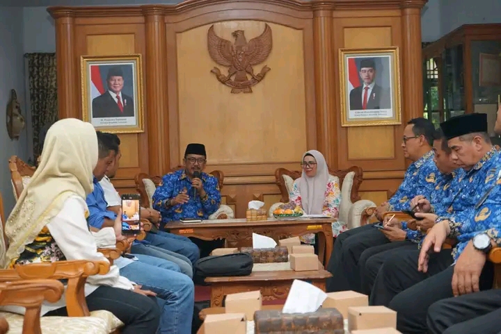 garudasaktinews.com sukabumi- Pemerintah Kabupaten Sukabumi terus mendorong penguatan literasi informasi masyarakat melalui sinergi dengan Kelompok Informasi Masyarakat (KIM). Hal ini disampaikan Bupati Sukabumi, H Asep Japar saat melakukan audiensi bersama KIM MyPalabuhanratu, di Pendopo Palabuhanratu, Selasa (17/6/2025).