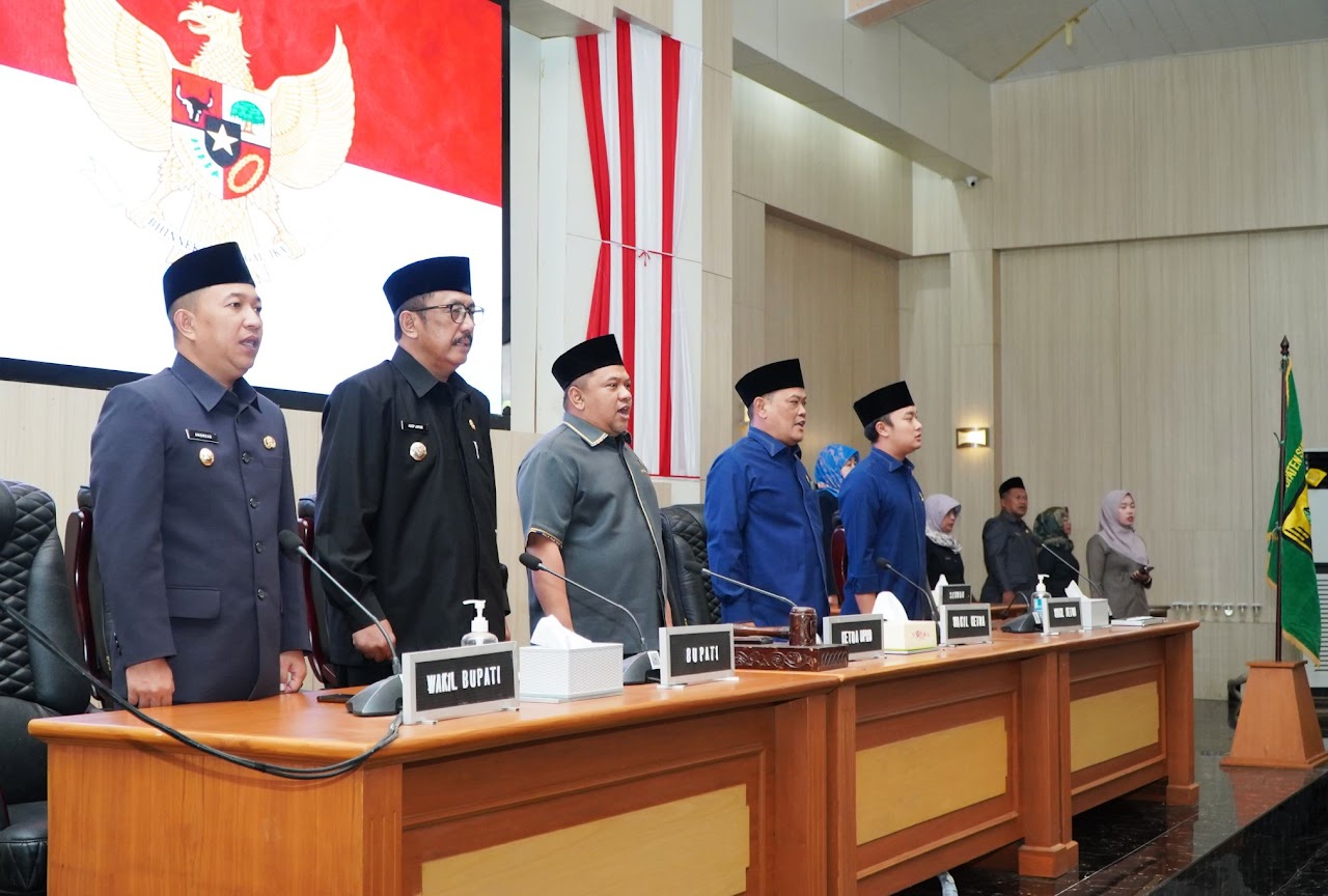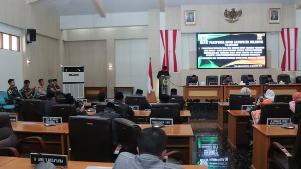garudasaktinews.com – Sukabumi, Pada Rabu, 12 Maret 2025, Dewan Perwakilan Rakyat Daerah (DPRD) Kabupaten Sukabumi menggelar Rapat Paripurna ke-8 Tahun Sidang 2025 di Ruang Rapat Utama Gedung DPRD Kabupaten Sukabumi. Rapat ini dipimpin oleh Ketua DPRD Kabupaten Sukabumi, Budi Azhar Mutawali, S.IP., didampingi Wakil Ketua II H. Usep dan Wakil Ketua III Ramzi Akbar Yusuf, SM. Hadir dalam rapat tersebut Bupati Sukabumi Drs. H. Asep Japar, MM, Wakil Bupati H. Andreas, SE, anggota DPRD, unsur Forkopimda, kepala perangkat daerah, para camat, serta tamu undangan lainnya.