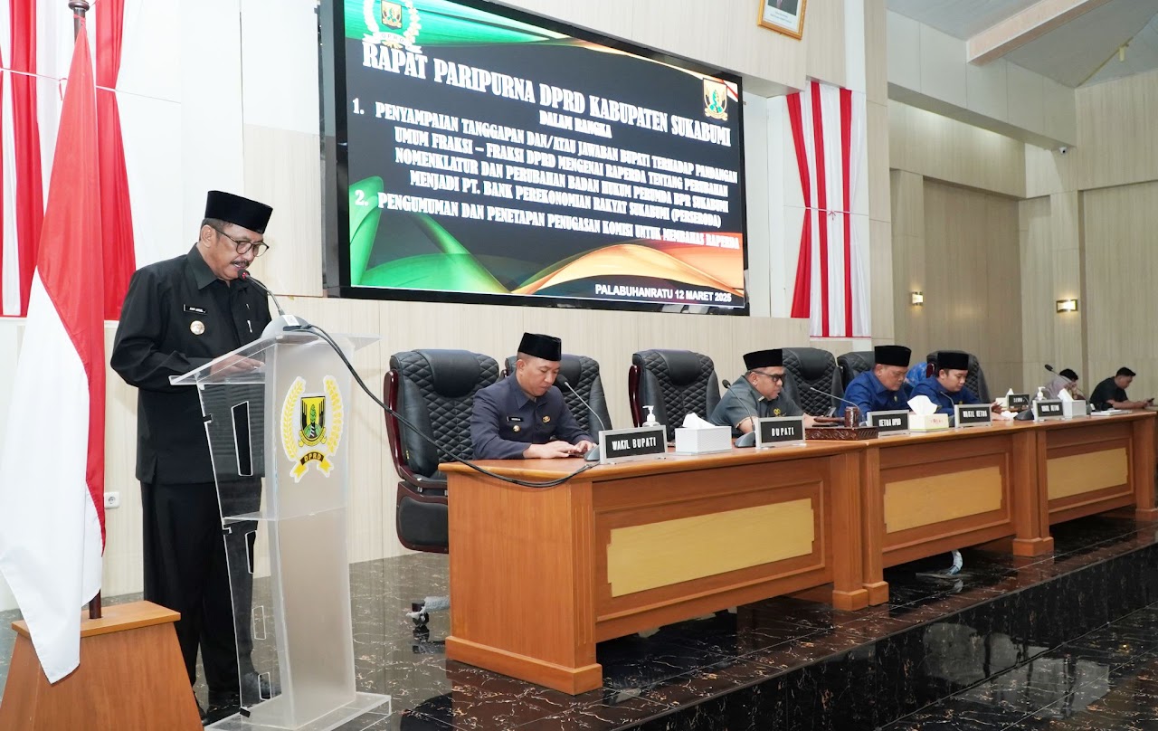 Dalam sambutannya, Bupati Sukabumi menyampaikan apresiasi atas dukungan dari berbagai fraksi DPRD terkait transformasi Perumda BPR Sukabumi menjadi PT. Bank Perekonomian Rakyat Sukabumi (Perseroda). Beliau menekankan bahwa perubahan status ini bertujuan untuk memperkuat kelembagaan dan meningkatkan otoritas sektor keuangan BPR, dengan tetap mengedepankan prinsip independensi serta penguatan tata kelola yang baik. Selain itu, penerapan teknologi informasi diharapkan dapat meningkatkan kualitas layanan perbankan, sehingga memberikan layanan yang lebih cepat, mudah, dan aman bagi masyarakat.