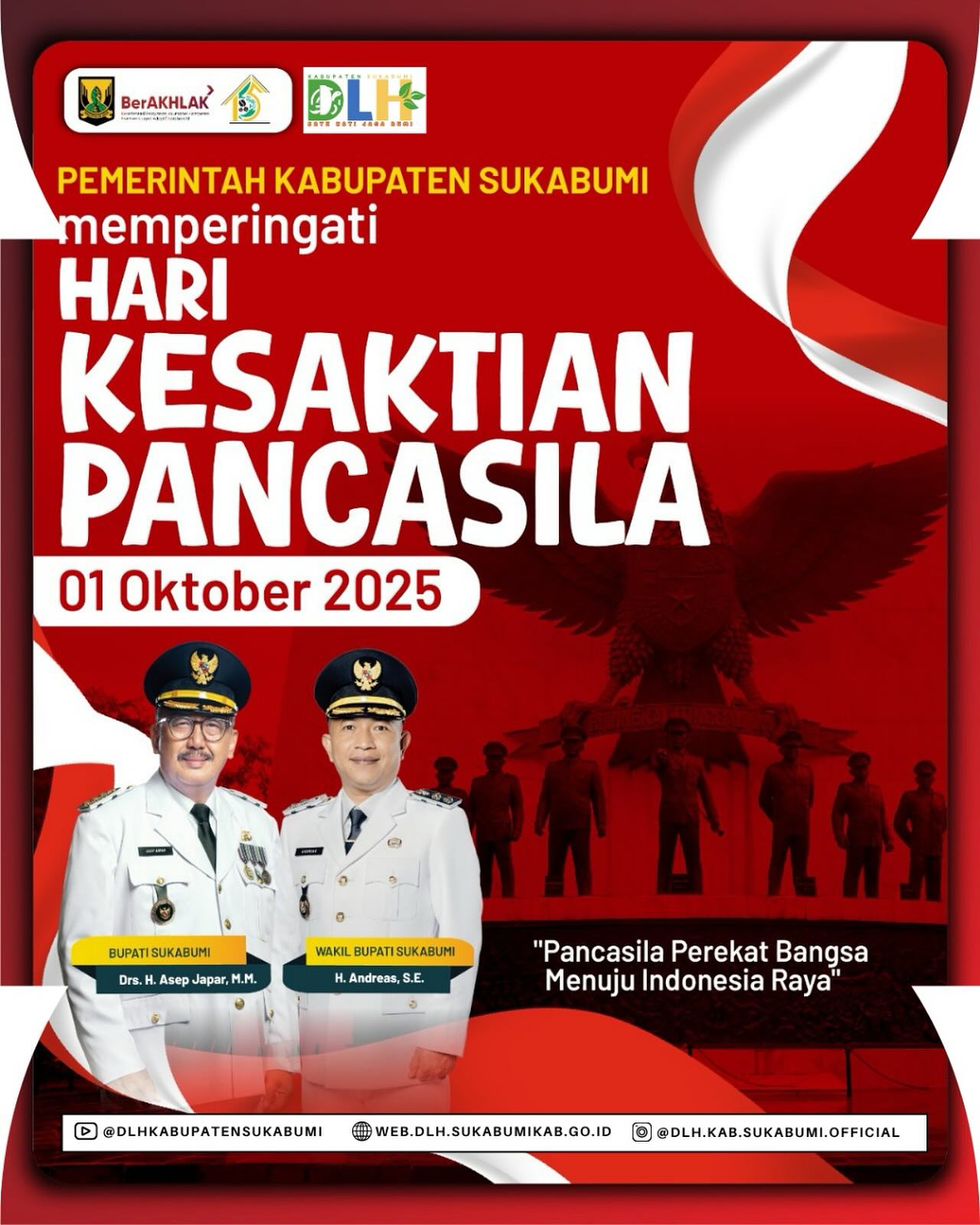 Dinas Lingkungan Hidup Kabupaten Sukabumi Mengucapkan Selamat Hari Kesaktian Pancasila 2025GARUDA SAKTI NEWS01/10/202526/10/2025Berita, SUKABUMI25874 Views Post Views: 25,874 Related PostsWarga Desa Cikahuripan Kecamatan Cisolok Sukabumi Apresiasi DLH Kabupaten Sukabumi yang Cepat Tanggap Tangani Dampak BanjirDinas Lingkungan Hidup Kabupaten Sukabumi Mengucapkan Selamat Hari Santri Nasional 2025Ucapan Keluarga besar Dinas Lingkungan Hidup Kabupaten SukabumiTPA Cimenteng Terima Kunjungan Edukatif dari SD Alam Indonesia Sukabumi: DLH Dampingi Kegiatan Outing Bertema LingkunganDinas Lingkungan Hidup Kabupaten Sukabumi Lakukan Verifikasi Lapangan Penilaian Sekolah Adiwiyata 2025Dinas Lingkungan Hidup Kabupaten Sukabumi Mengucapkan Selamat HUT TNI Ke 80Dinas Lingkungan Hidup Kabupaten Sukabumi Mengucapkan Selamat Hari Batik Nasional 2025DLH Kabupaten Sukabumi Mengajak Seluruh Masyarakat Untuk Memberikan Dukungan Penuh Kepada Winie Zenab Nurkhasanah, Ini Cara Tutorial Votenya..!!Don't MissDisdukcapil Sukabumi Buka Layanan Adminduk di Tiga Titik Saat Touring Ngabumi & Geopark Fun Rally 2025Polres Sukabumi Gelar Apel Kesiapan Tanggap Darurat Bencana di PalabuhanratuAl Umanaa Jadi Rujukan Nasional, BI Sulawesi Tenggara Studi Tiru Ekonomi Syariah dan Kemandirian PesantrenPEMDES Sukamaju Kec. Cikakak Gelar Gotong Royong Perbaiki Irigasi Ciodeng Pasir Badak, Perkuat Kepedulian dan Kekompakan WargaPEMKAB. Sukabumi Tata Ulang Geopark Information Center untuk Perkuat Daya Tarik Wisata DuniaDLH Kabupaten Sukabumi Dampingi Wabup Tinjau Lokasi Pasca Bencana di Cisolok : Pastikan Penanganan Lingkungan Berkelanjutan