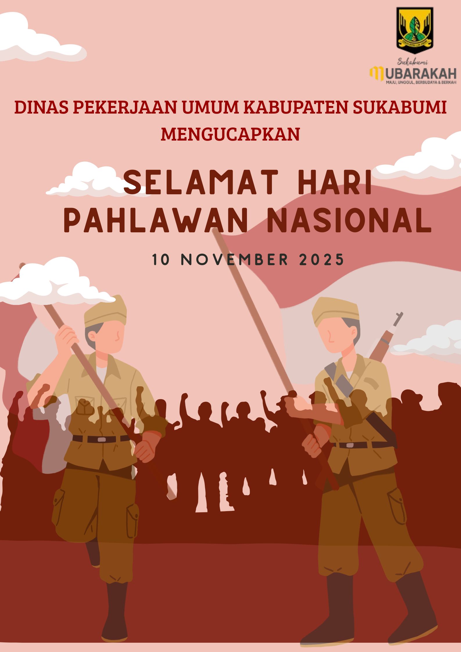 Dinas Pekerjaan Umum Mengucapkan Selamat Hari Pahlawan Nasional 10 November 2025GARUDA SAKTI NEWS10/11/202501/12/2025Berita, SUKABUMI25938 Views Post Views: 25,938 Don't MissDinas Pariwisata Kabupaten Sukabumi Mengucapkan Selamat Hari Lahir Kartini 21 April 2026Desa Bojonggaling Kec. Bantargadung Sukabumi Gelar Sahriyahan Bulanan, Perkuat Ukhuwah dan Sinergi MasyarakatKlaim BPJS Ketenagakerjaan Kini Bisa Lewat Antrean Online, Layanan Lebih Cepat dan TerjadwalDinas Pekerjaan Umum Kabupaten Sukabumi Mengucapkan Selamat HUT Ke-74 KOPASSUS 16 April 2026Dinas PU Kabupaten Sukabumi Realisasikan Rehabilitasi Jalan Parungkuda–Langbow dan Ciambar–PurwasariUPTD PU Wilayah Sukabumi Gerak Cepat Tangani Pohon Tumbang di Ruas Jalan Cimuncang