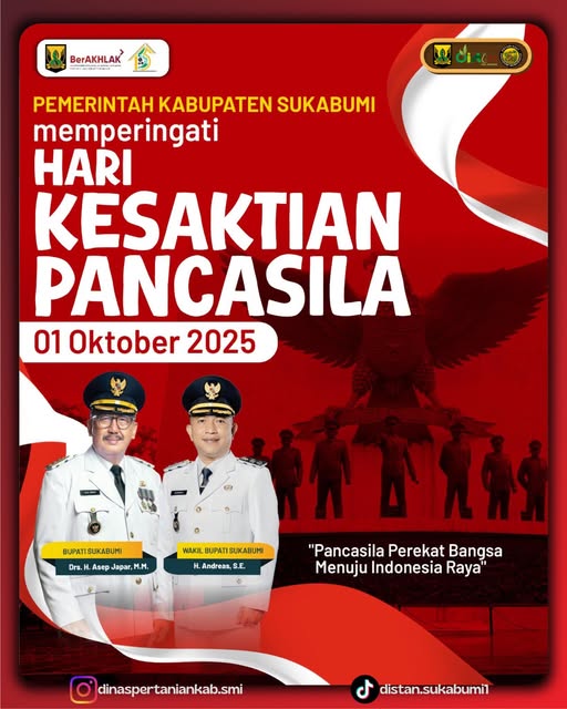 Dinas Pertanian Kabupaten Sukabumi Mengucapkan Hari Kesaktian Pancasila 01 Oktober 2025GARUDA SAKTI NEWS01/10/202516/10/2025Berita, SUKABUMI25866 Views Post Views: 25,866 Don't MissDisdukcapil Sukabumi Buka Layanan Adminduk di Tiga Titik Saat Touring Ngabumi & Geopark Fun Rally 2025Polres Sukabumi Gelar Apel Kesiapan Tanggap Darurat Bencana di PalabuhanratuAl Umanaa Jadi Rujukan Nasional, BI Sulawesi Tenggara Studi Tiru Ekonomi Syariah dan Kemandirian PesantrenPEMDES Sukamaju Kec. Cikakak Gelar Gotong Royong Perbaiki Irigasi Ciodeng Pasir Badak, Perkuat Kepedulian dan Kekompakan WargaPEMKAB. Sukabumi Tata Ulang Geopark Information Center untuk Perkuat Daya Tarik Wisata DuniaDLH Kabupaten Sukabumi Dampingi Wabup Tinjau Lokasi Pasca Bencana di Cisolok : Pastikan Penanganan Lingkungan Berkelanjutan