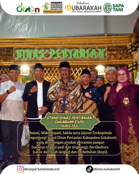 Stand Dinas Pertanian yang berada di arena pameran tersebut menjadi salah satu daya tarik utama bagi pengunjung. Bupati Sukabumi, Wakil Bupati Sukabumi, Sekretaris Daerah, serta jajaran Forum Koordinasi Pimpinan Daerah (Forkopimda) tampak berkunjung dan memberikan apresiasi terhadap tampilan serta inovasi produk yang dihadirkan.