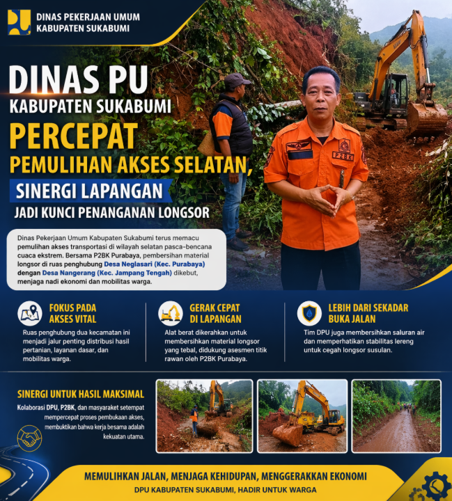 DPU Kabupaten Sukabumi menegaskan bahwa percepatan penanganan infrastruktur pascabencana bukan hanya soal perbaikan fisik, tetapi juga bagian dari upaya menjaga keberlangsungan ekonomi lokal dan stabilitas sosial masyarakat.