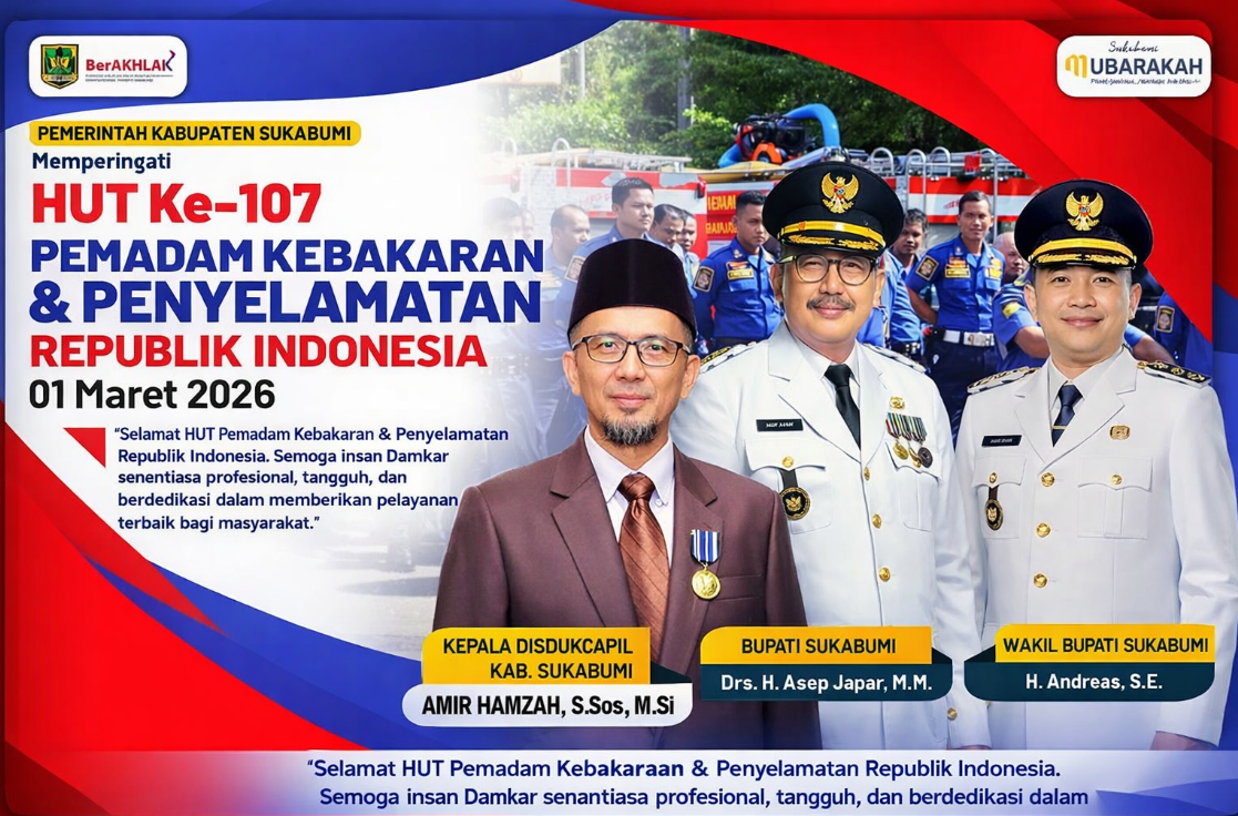 DISDUKCAPIL Kabupaten Sukabumi Mengucapkan Selamat Hari Pemadam Kebakaran dan Penyelamatan Republik IndonesiaGARUDA SAKTI NEWS01/03/202612/03/2026Berita, SUKABUMI29608 Views Post Views: 29,608 Don't MissKlaim BPJS Ketenagakerjaan Kini Bisa Lewat Antrean Online, Layanan Lebih Cepat dan TerjadwalDinas PU Kabupaten Sukabumi Realisasikan Rehabilitasi Jalan Parungkuda–Langbow dan Ciambar–PurwasariKadis Pariwisata Sukabumi Soroti Dugaan Kecurangan Timbangan Ikan, Dinilai Rusak Citra WisataKetua DPRD Kabupaten Sukabumi Terima Audiensi Aliansi Pemuda, Aspirasi Reses Jadi SorotanDinas PU Kabupaten Sukabumi Percepat Pemulihan Akses Selatan, Sinergi Lapangan Jadi Kunci Penanganan LongsorDisdukcapil Kabupaten Sukabumi Gelar Apel Pagi dan Berikan Penghargaan ASN serta PPPK Berprestasi