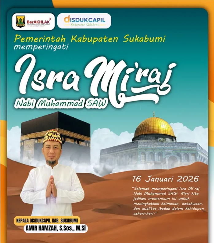 DISDUKCAPIL Kabupaten Sukabumi Mengucapkan Selamat Memperingati Hari Isra Mi’raj Nabi Muhammad SAWGARUDA SAKTI NEWS16/01/202604/02/2026Berita, SUKABUMI25882 Views Post Views: 25,882 Don't MissDesa Bojonggaling Kec. Bantargadung Sukabumi Gelar Sahriyahan Bulanan, Perkuat Ukhuwah dan Sinergi MasyarakatKlaim BPJS Ketenagakerjaan Kini Bisa Lewat Antrean Online, Layanan Lebih Cepat dan TerjadwalDinas Pekerjaan Umum Kabupaten Sukabumi Mengucapkan Selamat HUT Ke-74 KOPASSUS 16 April 2026Dinas PU Kabupaten Sukabumi Realisasikan Rehabilitasi Jalan Parungkuda–Langbow dan Ciambar–PurwasariUPTD PU Wilayah Sukabumi Gerak Cepat Tangani Pohon Tumbang di Ruas Jalan CimuncangKeluarga Besar Dinas Pekerjaan Umum Kabupaten Sukabumi Mengucapkan Selamat Ulang Tahun Ke-55 Kang Dedi Mulyadi Gubernur Jawabarat