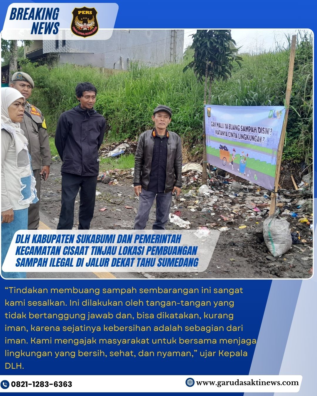 “Tindakan membuang sampah sembarangan ini sangat kami sesalkan. Ini dilakukan oleh tangan-tangan yang tidak bertanggung jawab dan, bisa dikatakan, kurang iman, karena sejatinya kebersihan adalah sebagian dari iman. Kami mengajak masyarakat untuk bersama menjaga lingkungan yang bersih, sehat, dan nyaman,” ujar Kepala DLH.