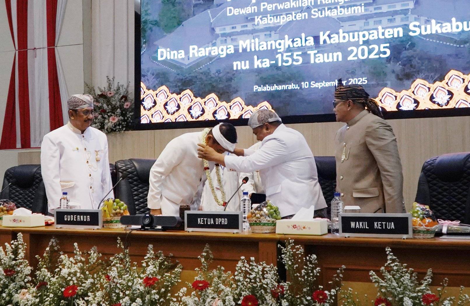 garudasaktinews.com – Sukabumi, Pemerintah Kabupaten Sukabumi memperingati Hari Jadi ke-155 tahun 2025 melalui Rapat Paripurna DPRD yang berlangsung di Ruang Sidang Utama DPRD Kabupaten Sukabumi, Rabu (10/9/2025). Agenda bersejarah ini dihadiri oleh Gubernur Jawa Barat, H. Dedi Mulyadi, Bupati Sukabumi H. Asep Japar, Wakil Bupati H. Andreas, Wali Kota Sukabumi, jajaran Forkopimda, Forkopimcam, para anggota DPRD, tokoh masyarakat, serta berbagai unsur perwakilan organisasi kemasyarakatan dan kepemudaan.