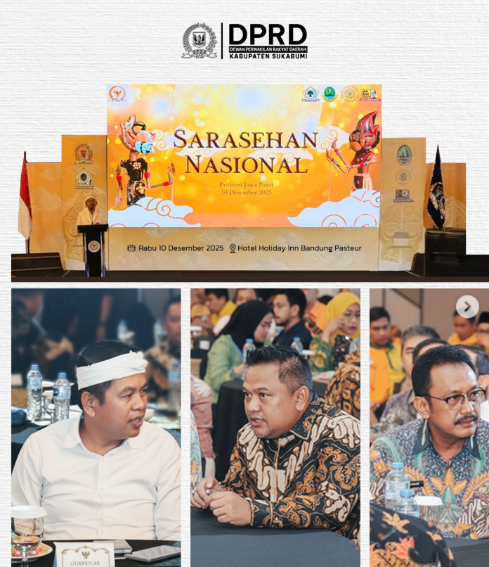 garudasaktinews.com – Sukabumi, Ketua DPRD Kabupaten Sukabumi, Budi Azhar Mutawali, menghadiri Sarasehan Nasional MPR-RI yang digelar di Hotel Holiday Inn Bandung Pasteur pada Rabu (10/12/2025). Kegiatan strategis ini turut dihadiri oleh Gubernur Jawa Barat, Kang Dedi Mulyadi, beserta seluruh pimpinan daerah dari berbagai kabupaten/kota se-Jawa Barat.