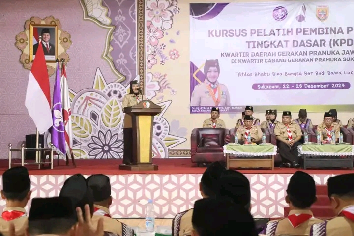 garudasaktinews.com – sukabumi.Sekda Ade Suryaman yang juga ketua Kwarcab Pramuka Kabupaten Sukabumi membuka Kegiatan Kursus Pelatih Pembina Pramuka Tingkat Dasar (KPD) Tahun 2024 di Ponpes Putri Assalam Warungkiara Kab Sukabumi.Minggu, (22/12/24).