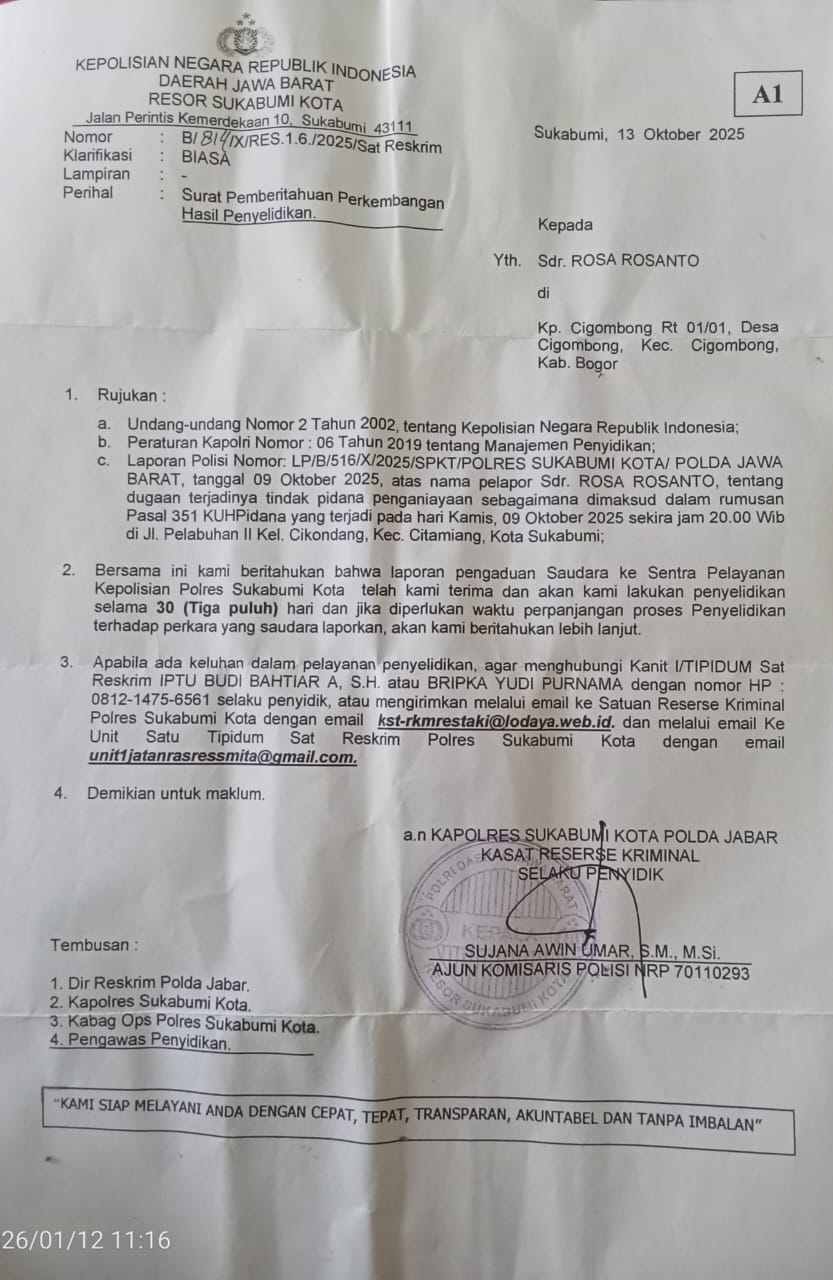 Hingga berita ini diturunkan, belum ada keterangan resmi dari Polres Sukabumi Kota terkait perkembangan penanganan laporan tersebut.