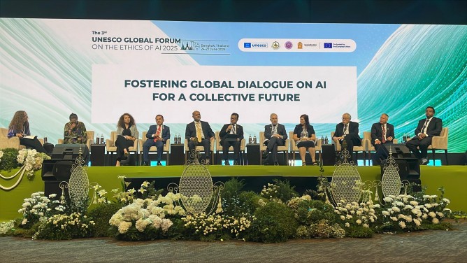 GARUDASAKTINEWS.COM-Wakil Menteri Komunikasi dan Digital Nezar Patria mewakili Indonesia dalam 3rd UNESCO Global Forum on the Ethics of Artificial Intelligence yang diselenggarakan pada Rabu (25/06/2025) di Bangkok, Thailand.