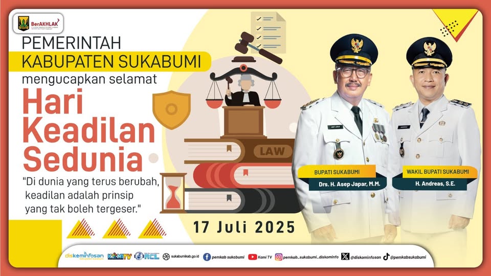 “Di dunia yang terus berubah, keadilan adalah prinsip yang tak boleh tergeser. Ia menjadi dasar tegaknya peradaban, penyeimbang antara hak dan kewajiban, serta jaminan bagi semua warga untuk hidup bermartabat,” demikian kutipan pernyataan Pemkab Sukabumi.