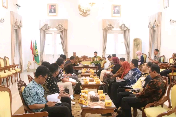 Bupati Sukabumi H.Marwan Hamami menerima Audiensi Direktur CV Menata Citra Selaras (MCS) membahas Rencana Perjanjian Kerjasama Investasi RMU antara Perumda Agro Sukabumi Mandiri (ASM) dengan CV Menata Citra Selaras (MCS). Pertemuan tersebut berlangsung Kamis, 3 Oktober 2024 di Pendopo Sukabumi.