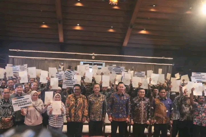 Penyerahan SHM Sekaligus Peluncuran Program Trans Tuntas Oleh Kementerian Transmigrasi, Menko AHY Didampingi Bupati Sukabumi