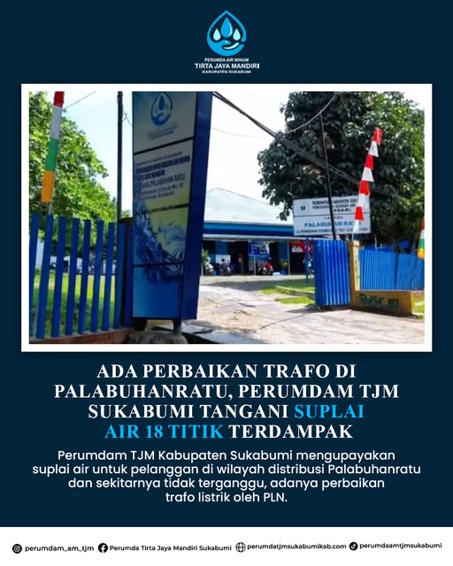 garudasaktinews.com – Sukabumi, Perusahaan Umum Daerah Air Minum (Perumdam) Tirta Jaya Mandiri (TJM) Kabupaten Sukabumi, melalui Cabang Palabuhanratu, terus berupaya menjaga kelancaran suplai air bersih kepada pelanggan, meskipun terjadi gangguan akibat perbaikan trafo listrik oleh PLN.