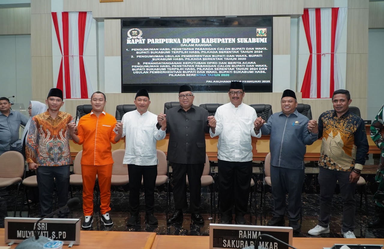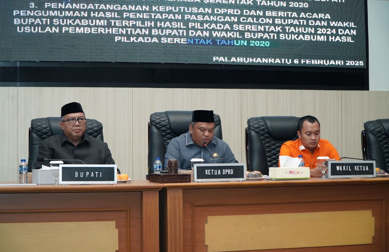 Rapat Paripurna DPRD Kabupaten Sukabumi Dalam Rangka : Penetapan Pasangan Calon Bupati dan Wakil Bupati terpilih Kabupaten Sukabumi Tahun 2024 dan Pengumuman Usulan Pemberhentian Bupati dan Wakil Bupati Kabupaten Sukabumi hasil Pilkada Serentak Tahun 2020