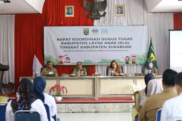 Garudasaktinews.com sukabumi- Sekda Ade Suryaman mengatakan rakor Gugus Tugas KLA merupakan percepatan dalam pemberdayaan anak. Apalagi, anak harus menjadi perhatian semua.hal ini disampaikan Sekda saat memimpin Rakor Gugus Tugas Kabupaten Layak Anak ( KLA ) Kabupaten Sukabumi, Senin (28/04/25) di Aula PKK Pendopo Sukabumi.