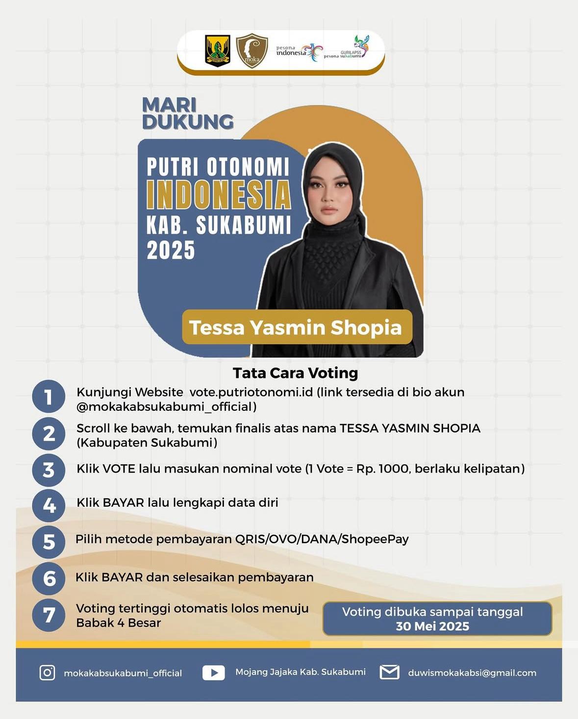 Sukabumi Mubarakah…!!! Dukung Teh Tessa Yasmin Shopia di Grand Final Putri Otonomi Indonesia 2025