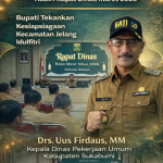 Kepala Dinas PU Sukabumi Hadiri Rapat Dinas Maret 2026, Bupati Tekankan Kesiapsiagaan Jelang Idulfitri Berita, SUKABUMI|10/03/202611/03/2026by GARUDA SAKTI NEWS garudasaktinews.com – Sukabumi, Kepala Dinas Pekerjaan Umum (PU) Kabupaten Sukabumi menghadiri Rapat