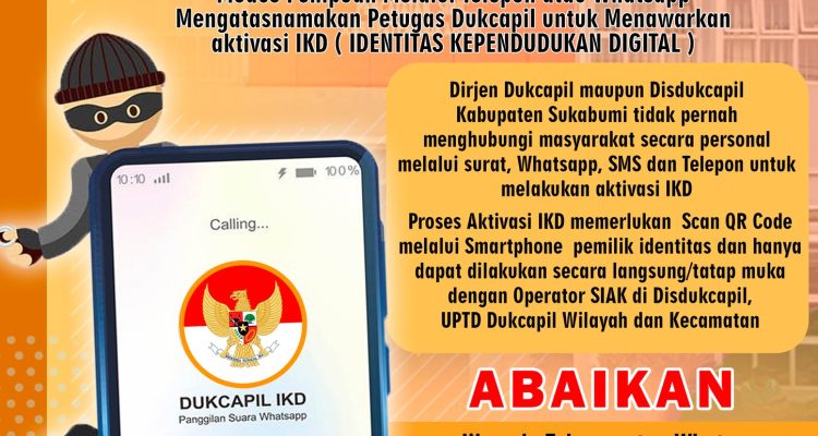 Dinas Dukcapil Kabupaten Sukabumi Imbau Masyarakat Waspada Modus Penipuan Aktivasi IKD Berita, SUKABUMI|20/09/202521/10/2025by GARUDA SAKTI NEWS garudasaktinews.com – Sukabumi, Dinas Kependudukan dan Pencatatan Sipil (Disdukcapil) Kabupaten Sukabumi mengimbau