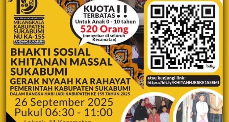 Khitanan Massal Meriahkan Hari Jadi ke-155 Kabupaten Sukabumi Berita, SUKABUMI|26/09/2025by GARUDA SAKTI NEWS garudasaktinews.com – Sukabumi, Dalam rangka memperingati Hari Jadi ke-155 Kabupaten Sukabumi, digelar
