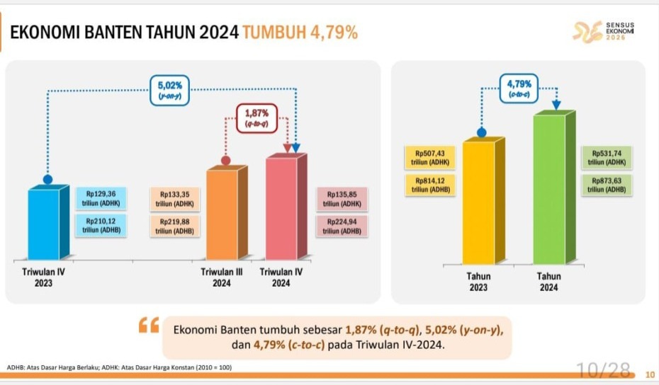 Pada Triwulan IV-2024, perekonomian Banten tumbuh 5,02 persen secara y-on-y (Triwulan IV-2024 dibandingkan Triwulan IV-2023).