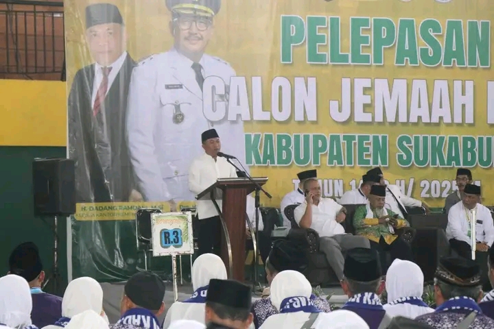 Garudasaktinews.com sukabumi- Wakil Bupati Sukabumi H.Andreas Melepas Calon Jemaah Haji Kloter 18 Kabupaten Sukabumi tahun 1446 H di komplek Pusbangdai Cikembang, Jumat 9 Mei 2025