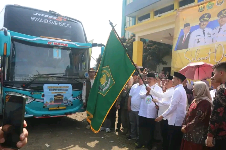 Garudasaktinews.com sukabumi- Wakil Bupati Sukabumi H.Andreas Melepas Calon Jemaah Haji Kloter 18 Kabupaten Sukabumi tahun 1446 H di komplek Pusbangdai Cikembang, Jumat 9 Mei 2025